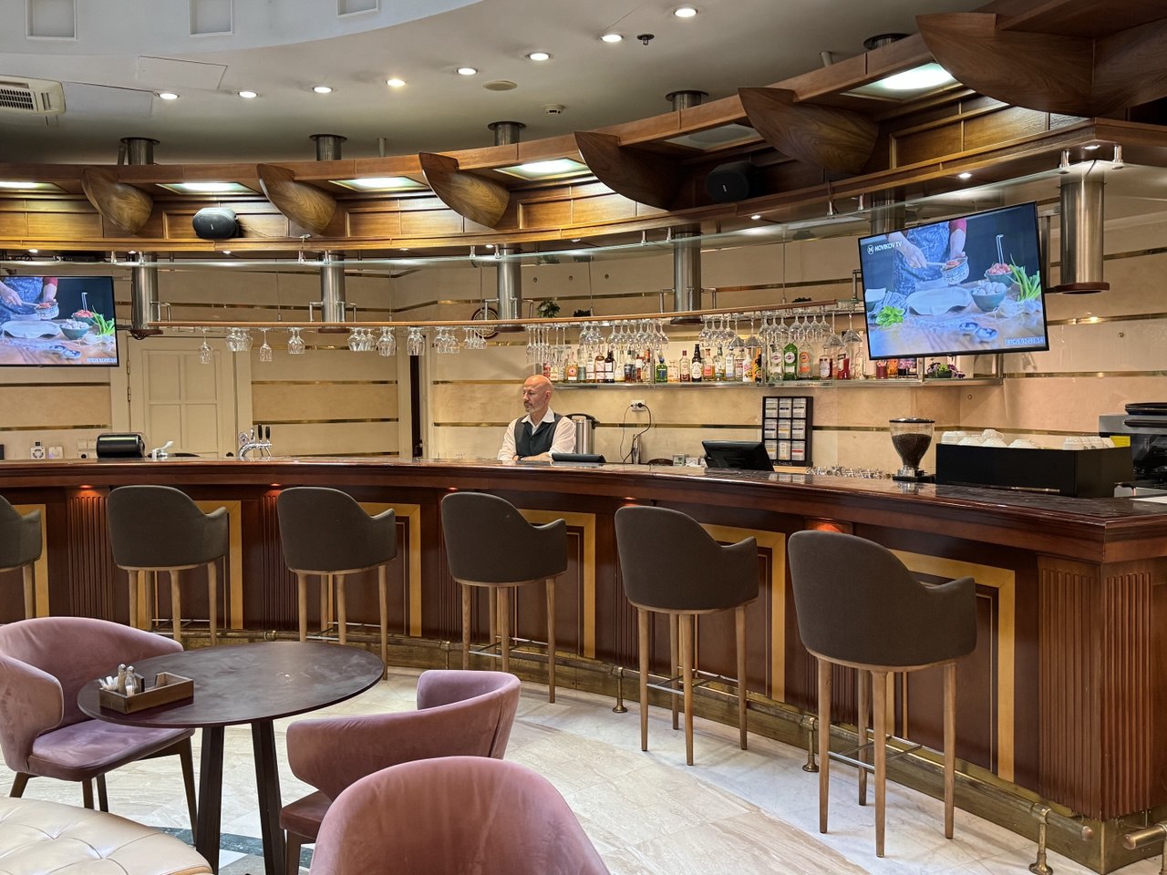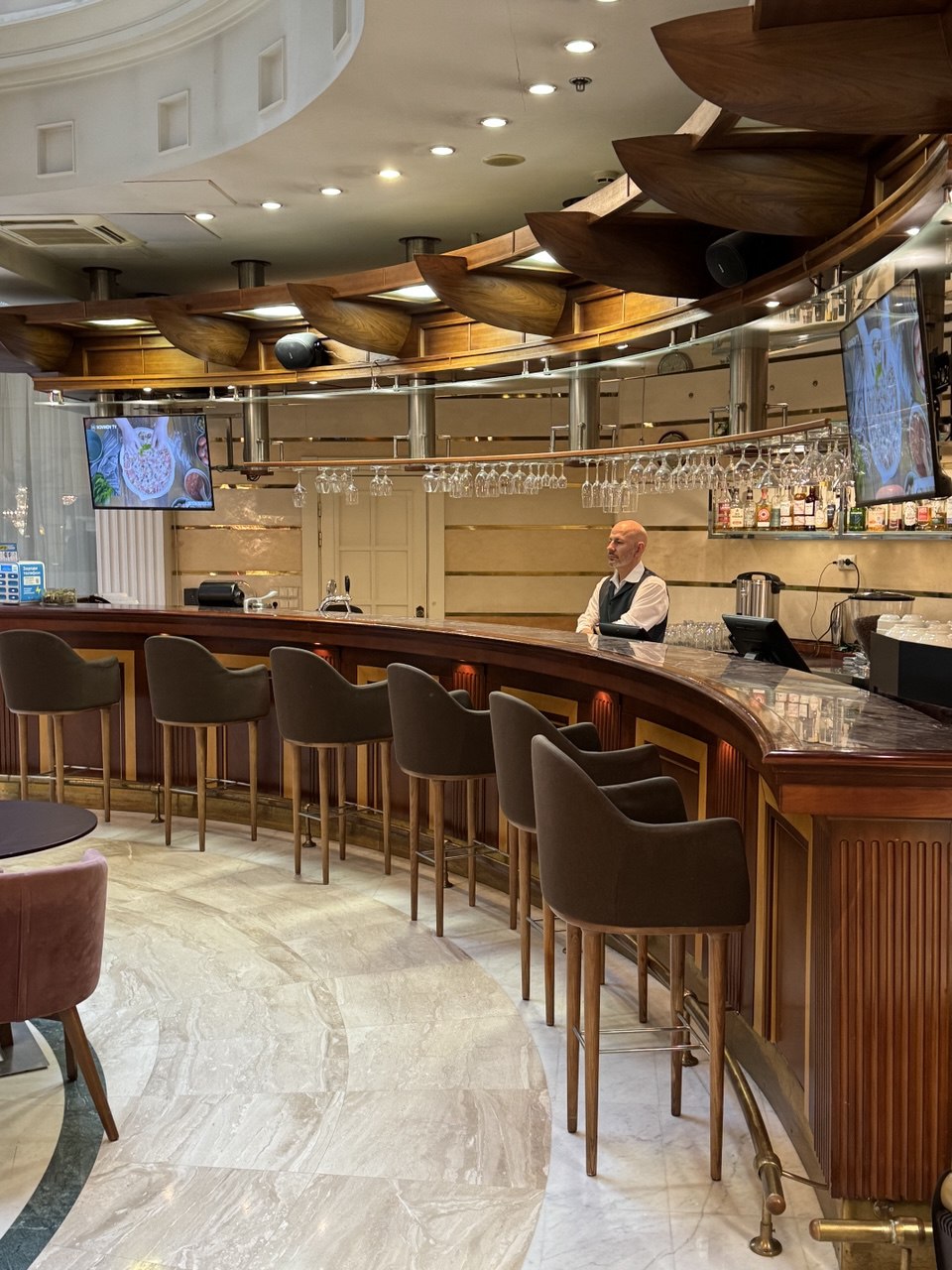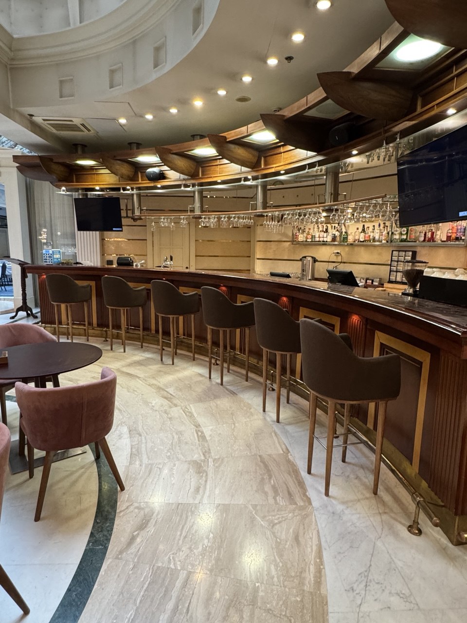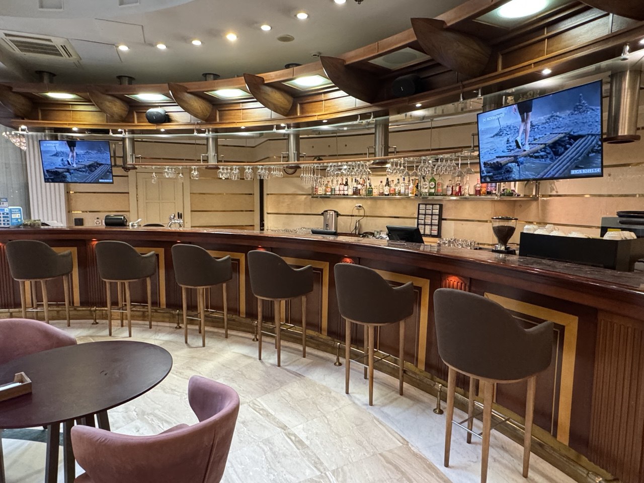 Отельный бар где вас накормят европейскими блюдами и напоят разнообразными напитками.