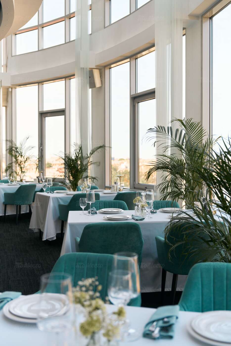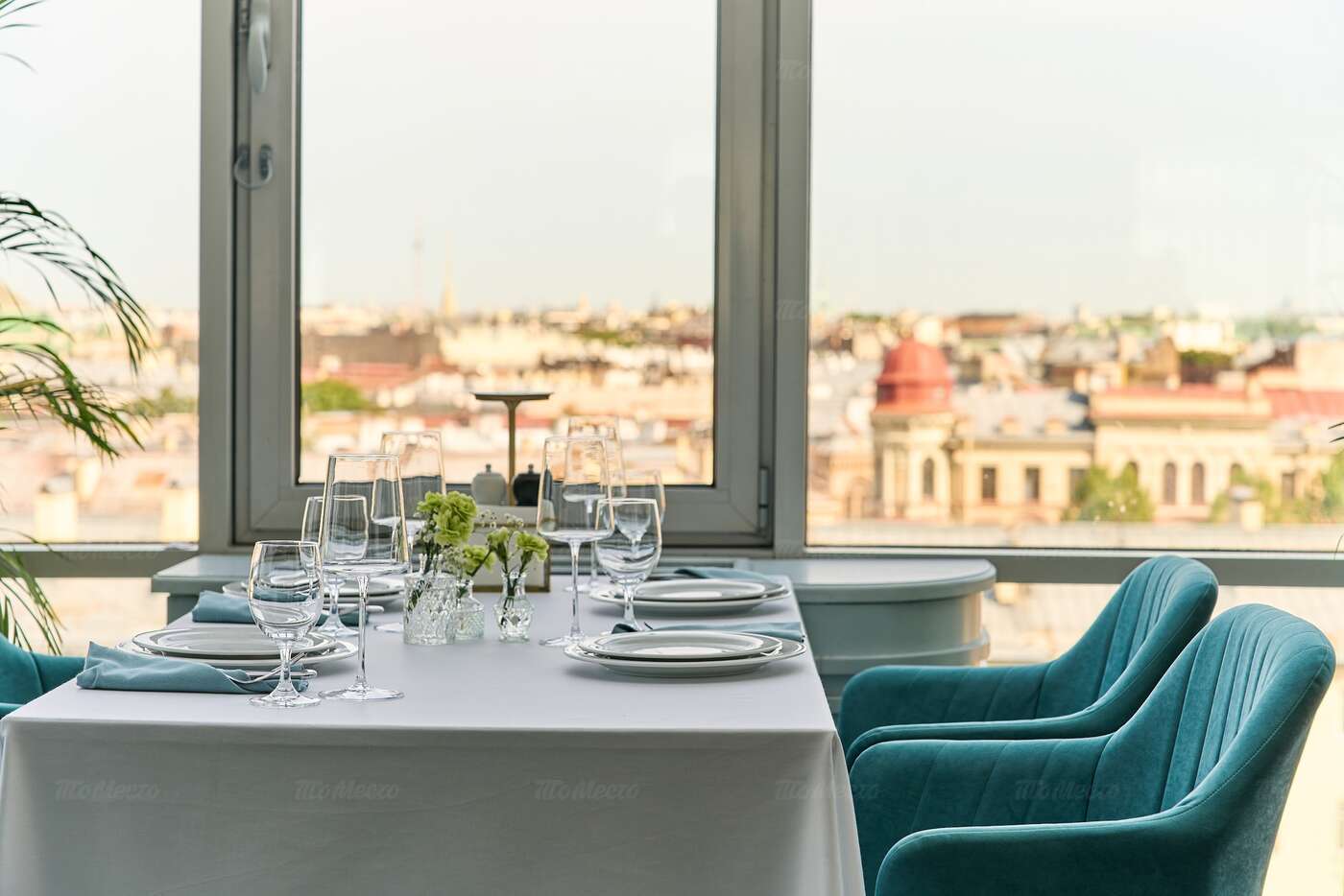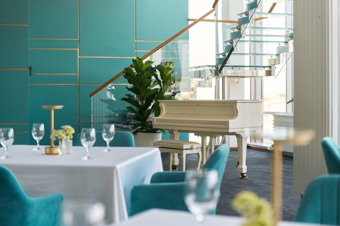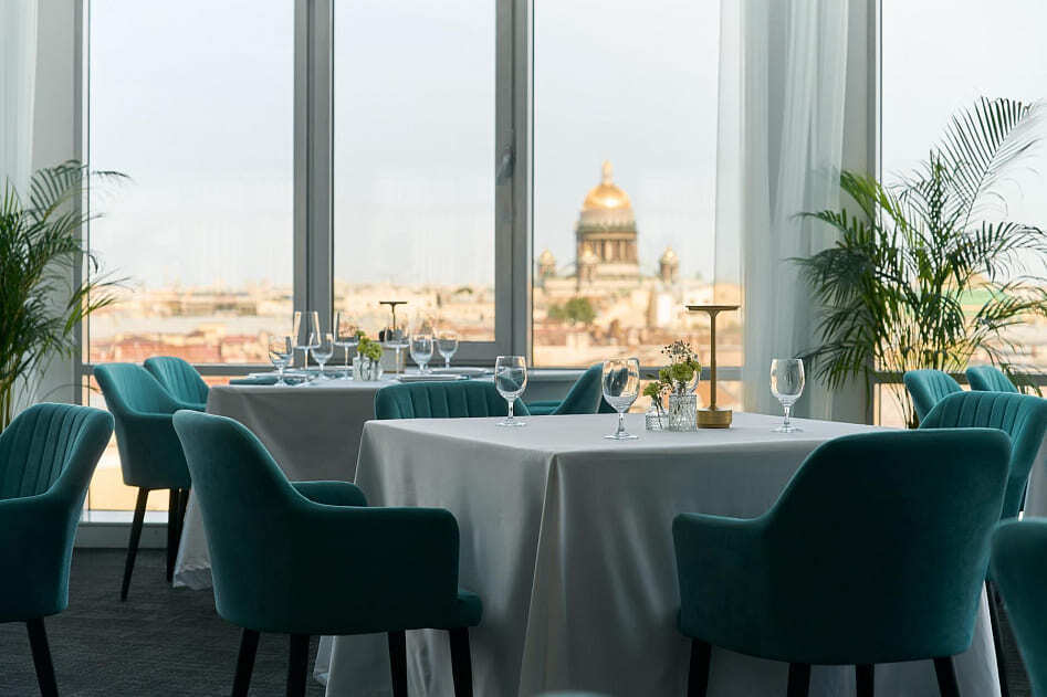 Элегантный ужин с видом на город. Идеальный симбиоз классики традиций с нотой современных тенденций. Мягкие оттенки, изысканный декор и уютная обстановка создадут неповторимую атмосферу романтики и уединения.